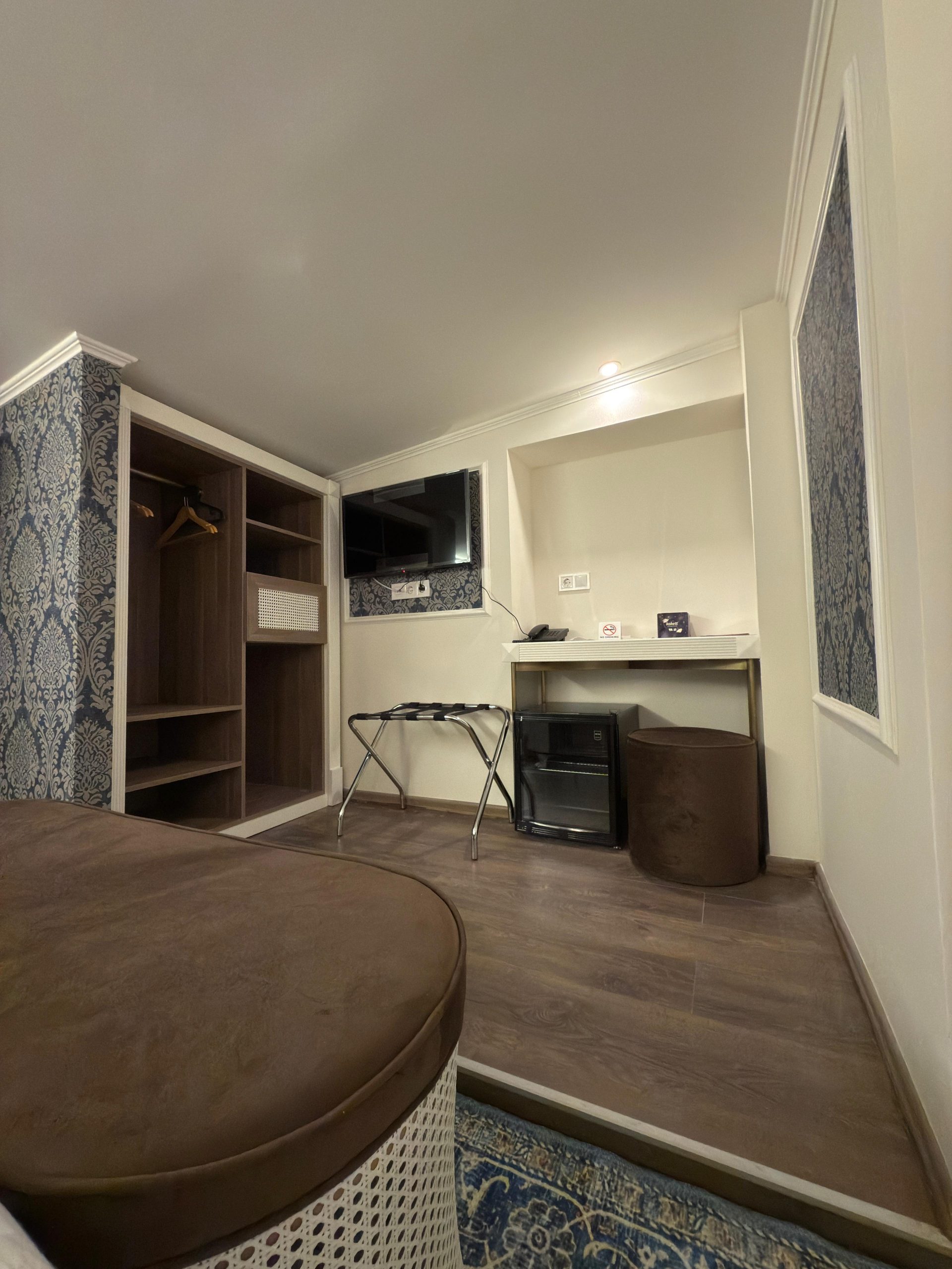 Cozy & Inviting: Though the ceiling is lower, it adds a warm, intimate atmosphere. The room features a premium double bed, ideal for two guests.