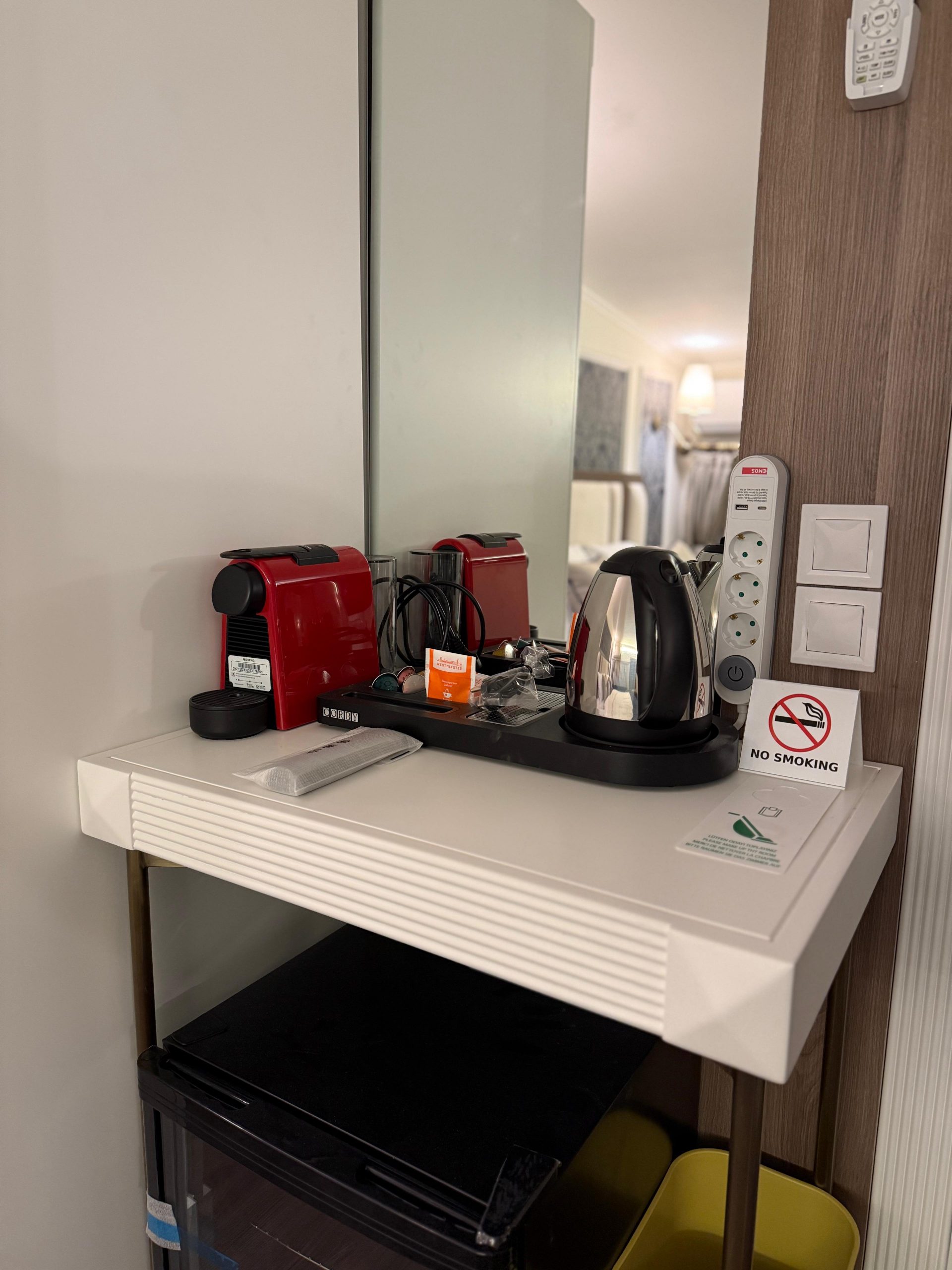 • Service station with coffee machine, kettle and tea