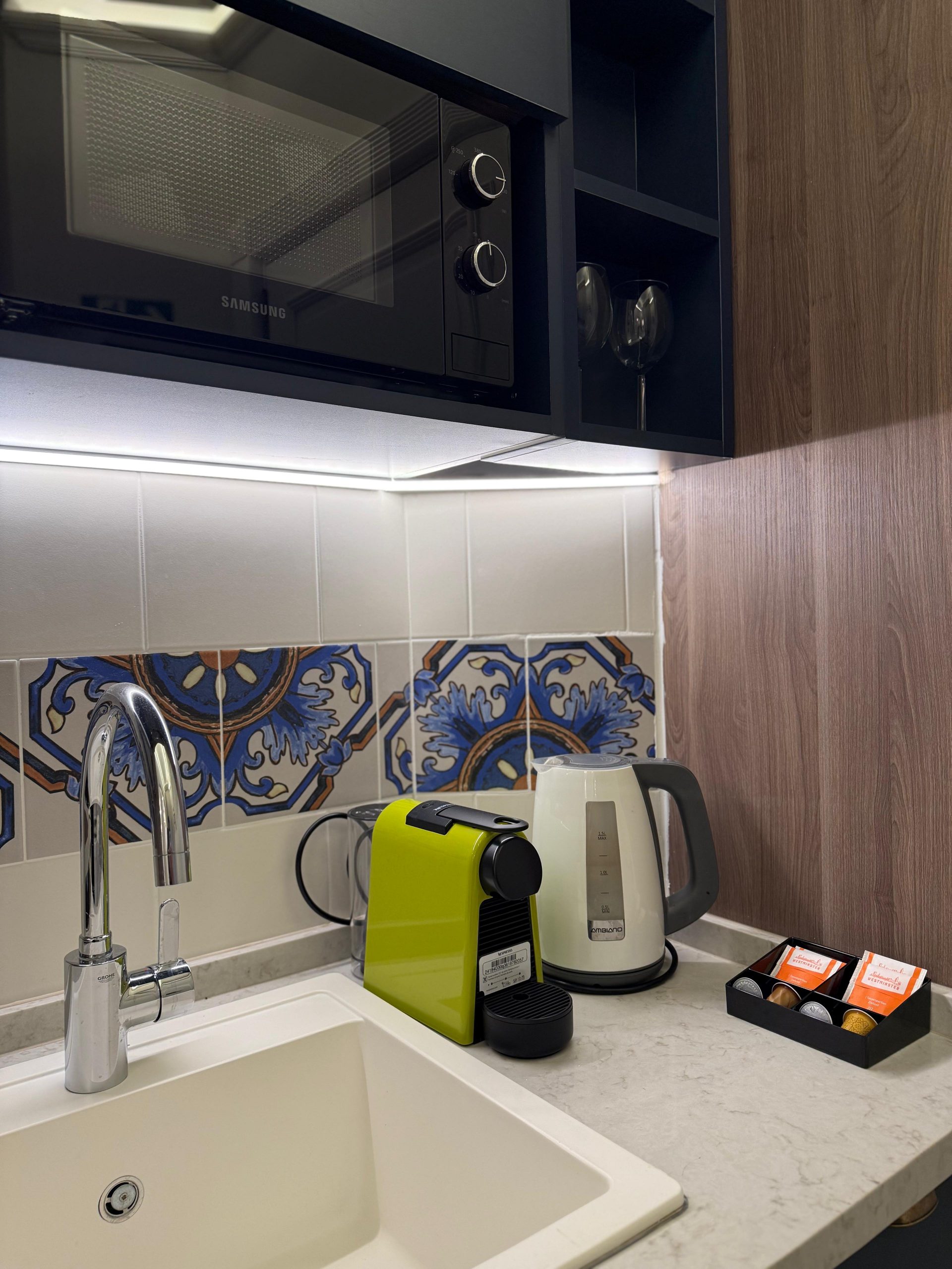 - Service station with coffee machine, kettle and tea