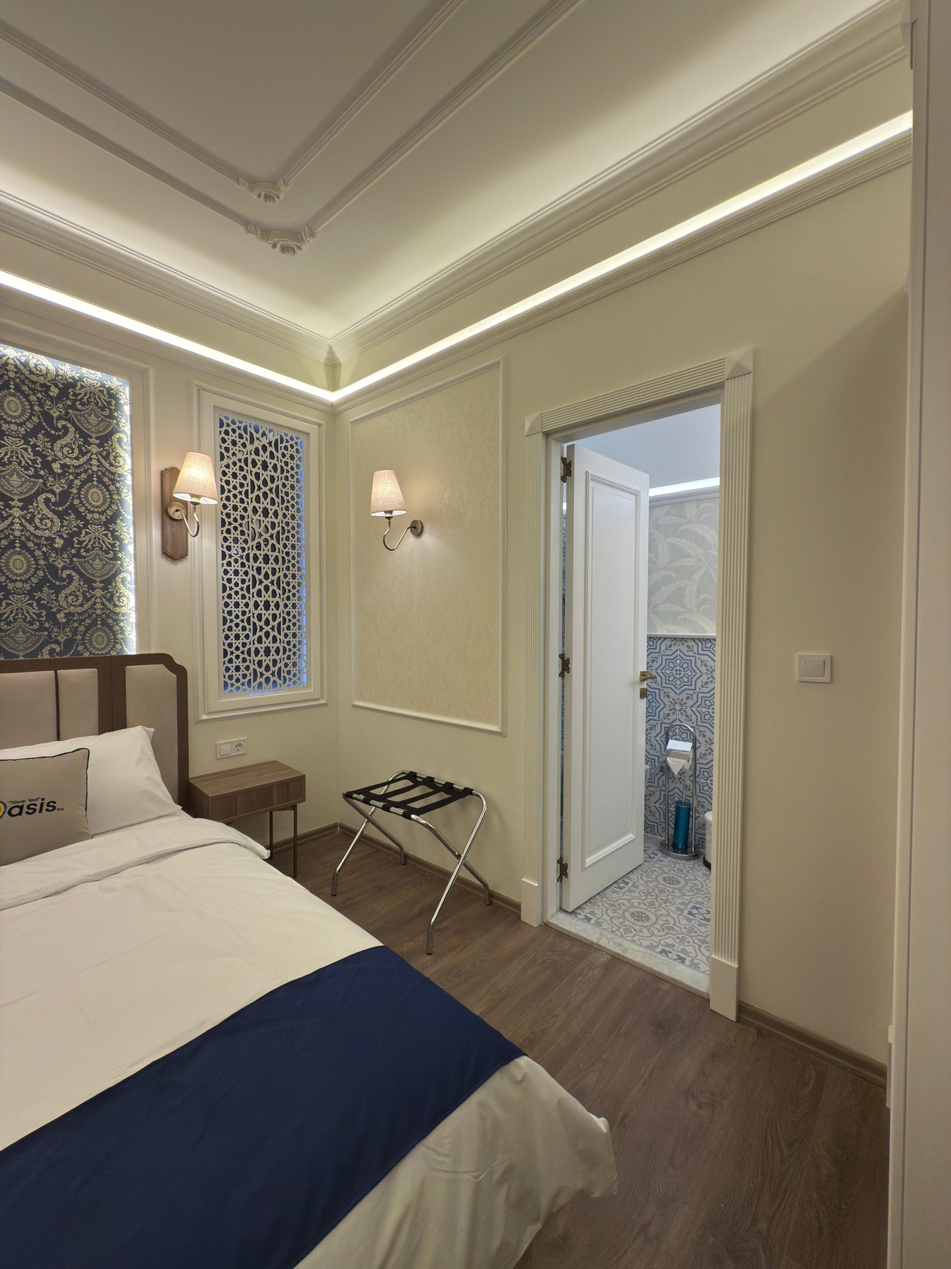 Comfort Room 2 at Oasis Inn Budapest offers a charming blend of historical elegance and modern convenience. Set in a 180-year-old building with Ottoman and Marrakech-inspired design elements, it invites guests into a serene and stylish space.