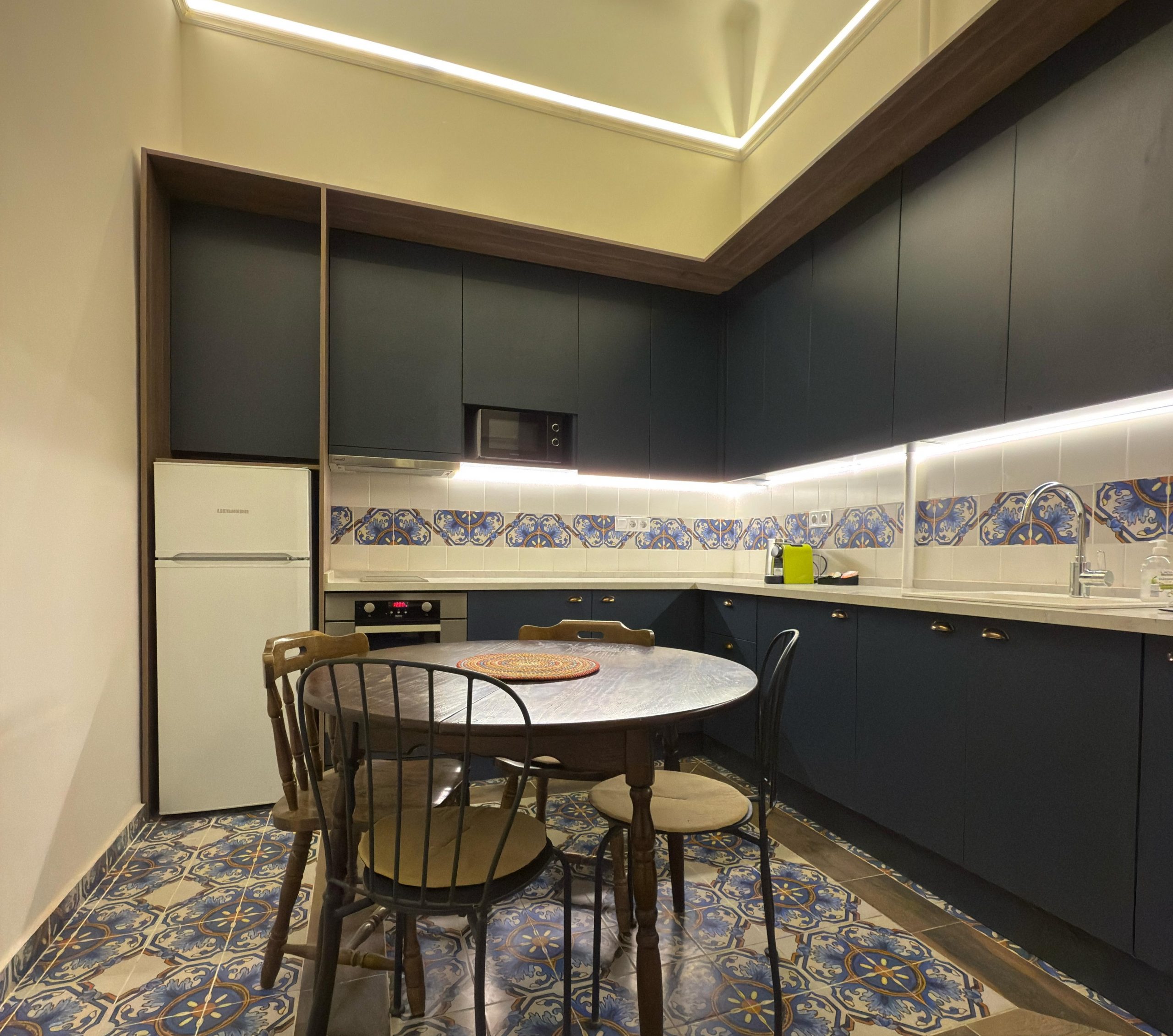 Spacious Comfort: Enjoy 4.5-meter-high ceilings, a fully equipped kitchen, and a cozy living area with direct garden access for a serene retreat.